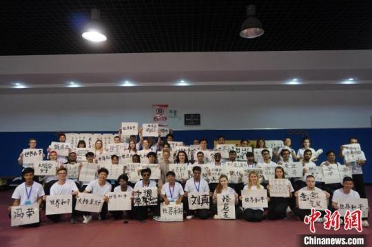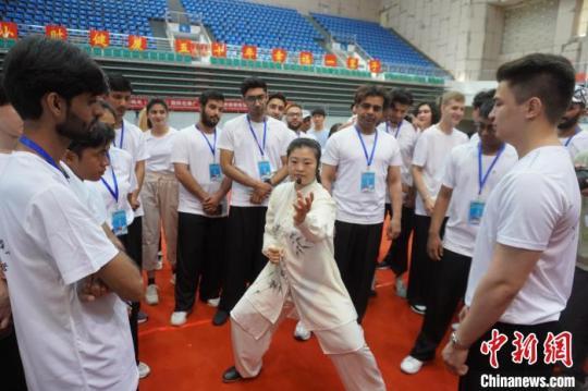 7月9日,国际大学生们进行太极拳学习成果展示。韩章云摄