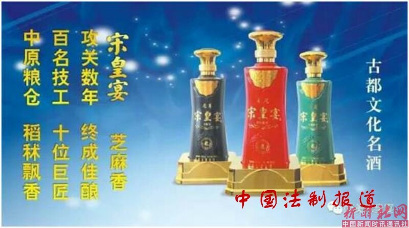 宋皇宴酒是大宋开国皇帝赵匡胤治国安邦、养心健身之美酒。宋皇宴酒传承了宋朝宫庭御酒酿造秘方,以优质高粱、小米、小麦、大米、玉米为原料,取茅台、五粮液、汾酒工艺之长与现代科技相结合,经大曲泥池60天发酵,蒸馏取酒、窖藏而成,酒体风格独特、酒香幽雅、入口丰满醇厚、绵柔爽净、空杯留香持久。是中原地区五粮复合香酒的典型代表。多年来为江苏洋河、四川泸洲、贵州、河南等地大型白酒企业定制生产优质芝麻香、酱香原酒调味酒。宋皇宴系列酒已成为展示开封历史特色的文化名片。