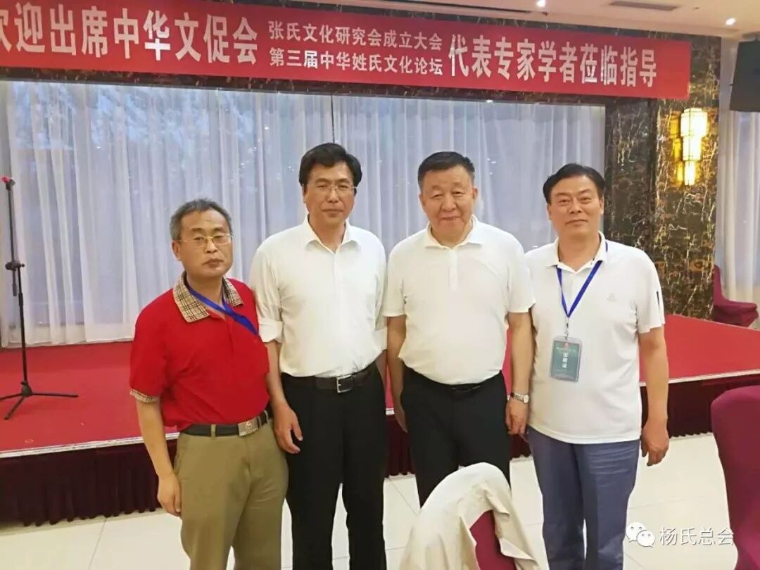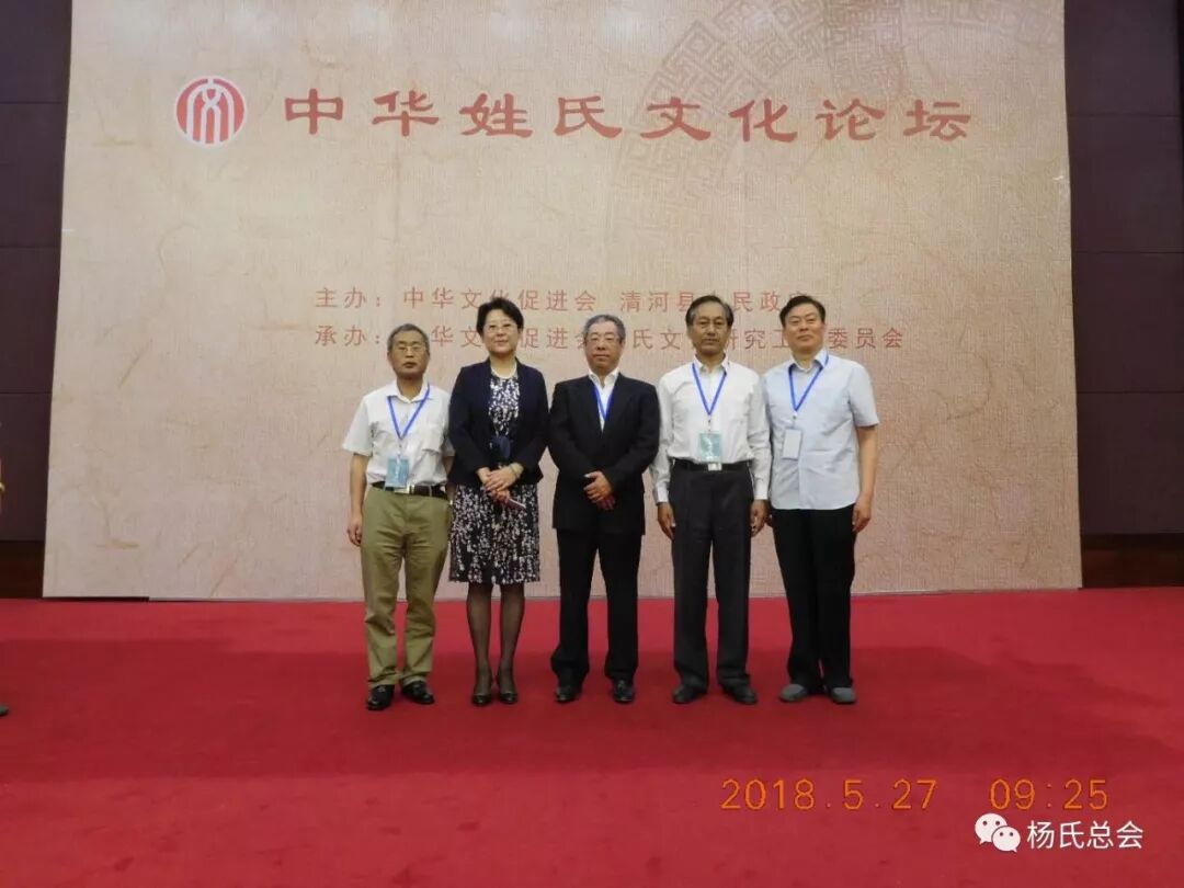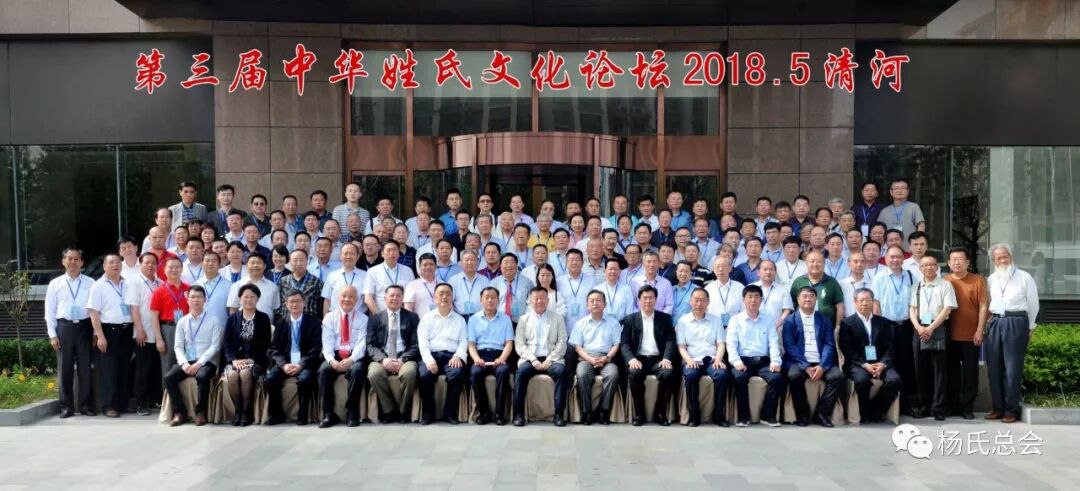 2018年5月27日,第三届中华姓氏文化论坛在河北省邢台市清河县召开。本次论坛由中华文化促进会、清河县人民政府主办,中华文化促进会张氏文化研究工作委员会承办。中华文化促进会主席王石、清河县领导、上海图书馆副馆长周德明,台湾著名姓氏文化专家廖庆六,美国犹他家谱协会亚洲总监聂思海等国内外姓氏文化研究专家,130多位姓氏文化组织代表参加了论坛活动。中华文化促进会杨氏文化研究工作委员会杨志刚主任、杨仁和监事长、杨万海秘书长应邀参加了论坛活动。