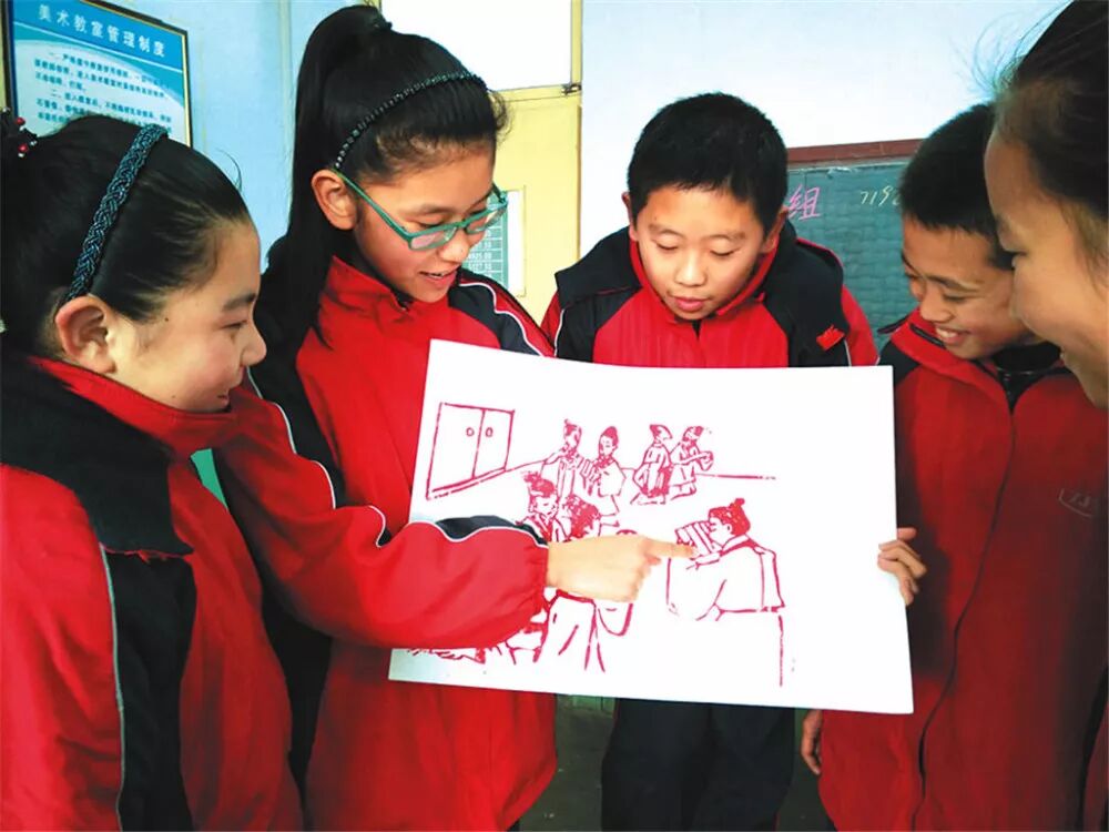 齐陵二中《版话齐文化》校本课程用古老的版画技艺来表现博大精深的齐文化。培养学生热爱传统文化和艺术,提高动手实践和审美素养。将篆刻、国画、设计、书法等融入版画创作,来表现泱泱齐风。形成一种集版画、书法、篆刻和齐文化相结合的综合艺术。