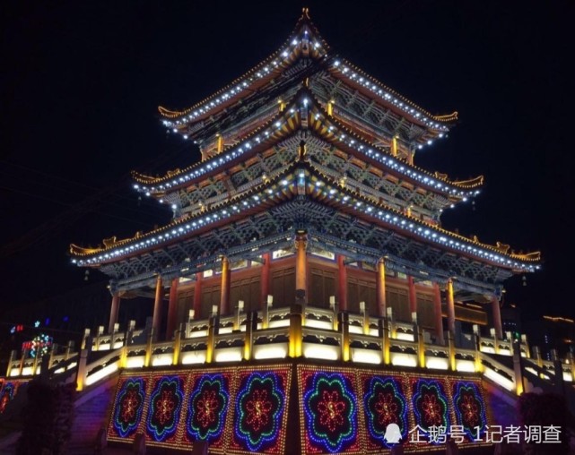 特约记者赵强报道:威远镇钟鼓楼坐落于青海省互助土族自治县县城所在地---威远镇。处于古镇中心的这座钟鼓楼为一座具有浓郁中国民族风格的歇山式十字型砖木结构建筑。其气势雄伟,高大雄壮,飞檐翅楚,工艺精巧,结构玲珑,楼体的檐柱、门窗上均有精致的雕刻或彩绘,画栋雕梁,雍容大方。钟鼓楼四角悬挂风铃,脊上饰以琉璃走兽,蔚为壮观,现已成为互助县的古老象征,是威远镇的标志性建筑。钟鼓楼始建于明天启四年(公元1624年)。楼为3层 ,占地348平米,高20.08米,宽度为14.9米,正方形底座。1988年,县政府对钟鼓楼进行了整体修缮,提高了基座,面积比解放前扩大了二十多倍,它以崭新的姿态屹立在土族之乡,成为互助的古老象征,显示了劳动人民建筑的卓越智慧。2007年,为使这一省级古建筑得到进一步保护,县政府又筹措资金230万元,对其进行了保护性维修。威远镇钟鼓楼是青海省重要的文物保护单位,同时也是不少当地人重要的情感寄托。它经历了四百多年的风雨沧桑。它是历史的见证,更是互助的标志。随着岁月的流逝,钟鼓楼的军事功能日益淡化,文化价值日益显现出来,钟鼓楼也成为了互助的“形象大使”。互助县自古便有青稞酒乡的美誉,新中国成立后,互助青稞酒已经成了青海省最著名的土特产之一。在设计互助青稞酒的商标时,鼓楼的形象成为了互助人普遍认同的选择,随着互助青稞酒的芳香,这座钟鼓楼如今以新的精神风貌在履行着“形象大使“的神圣职责。互助县自古便有青稞酒乡的美誉,每年,在重大节日集会和每年一届的环青海湖国际公路自行车赛之际,这座古老钟鼓楼,被打扮的分外漂亮,张灯结彩,红红火火,欢乐祥和的喜庆气氛如约而至;四周上万朵绢花组成的“中国土族,彩虹故乡”、“七彩互助,浪漫酒城”、“激情环湖,相约互助”等造型别致的醒目字牌和一个个花坛,喜庆祥和的节日气氛。