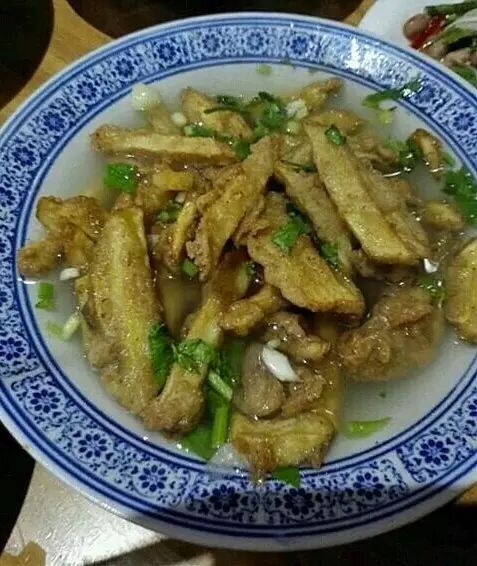沛县汉宴十大碗可分为官府、民间两种版本。官府的用料考究、做工精细,用于招待过往官员及达官贵人;民间的十大碗,则因陋就简,主要用于婚丧嫁娶时款待宾朋。无论是官府或民间的汉宴十大碗,其基本风格和制作方法,大同小异。这里所介绍的,是民间的汉宴十大碗。 制作汉宴十大碗,首先要做好两件事:过油、炖煲汤。 过油俗称油炸酥菜。把土豆或莲藕、山药粗粗地切成筷子般粗细的条状,放在流稀的面粉糊里,再加进盐粉、葱花、良姜丝以及花椒、胡椒等五香大料面,均匀调拌;然后一把一把抓起来,放在滚沸的油锅里油炸。炸好的食品,称之为酥菜,内软外脆,黄灿灿的分外好吃,是制作汉宴十大碗的基本成分。 炖煲汤:把猪骨头或牛骨头、羊骨头洗净砸断,放进锅里用沸水煮一煮,捞出来用清水冲洗,以去除血腥;然后再放进铁锅里,加足花椒、胡椒、良姜、桂皮、丁香、肉叩等佐料,大火烧沸后,再改用文火慢慢煨炖。炖好的骨头汤,略呈乳白色,味道鲜美,称之为煲汤,俗称老汤。 酥菜和煲汤做好了,就可以动手制作汉宴十大碗了。这十道大菜通常是: 焖子:把猪肉剁碎,掺入淀粉、佐料,搅拌均匀,摊成厚厚的长方形块状,放在笼中蒸熟,凉透;再用花刃铜刀切成长约十公分、宽约三公分、厚约半公分的薄片,周边均带花纹,状似旧时玩的纸牌;再把切好的焖子均匀排在小黑碗底及周边,中间装满酥菜,之后把盛着酥菜的小黑碗往大白碗里一扣,焖子翻转都覆盖在上边了。再用滚沸的煲汤一泼,就成了。 扦子:先把鸡蛋嗑烂、调和,分别用红、黄、绿几种食用颜料调均,放在热锅里煎成薄薄的许多大圆片,类似烙馍,俗称“吊皮子”;再把牛肉剁碎如泥,加入佐料摊在皮子上,卷成茶杯般粗细的圆柱状,蒸熟后,切成藕片状,装满碗后泼煲汤。签子剖面显现出红、黄、绿等一圈一圈的纹线,既好看又好吃,令人馋涎欲滴。 红扣肉:猪肉里脊剔除肋骨,切成长方形块状,洗净后放在加有花椒、八瓣、陈皮……佐料的铁锅中,慢慢炖熟;再把肉块捞出来,晾一晾,切成长方形片状;先装在小黑碗里,注意肉皮在下,上面装酥菜;装满碗后再倒叩在大碗里,泼煲汤。看上去一碗全是肉,红润润的很是好看。吃起来香而不腻,极受欢迎。 油炸鱼:把一两多重的小鲫鱼剁去头尾,一剖两片,去杂碎洗净,放在稀面糊中搅拌,然后放在油锅中炸熟,用刀切成粗条,注意不要完全切断,平铺在碗帽底,上面加酥菜、浇煲汤,装碗方法类同红叩肉。 甜米饭:用黑米、小米或大米,加红枣、莲子、冰糖、梨片、桂花等,放在锅内焖熟,鼓膨膨地盛满碗,上面再均匀撒一层红、白糖或青、红丝。 此外,还有虎皮鸡蛋、羊肉炒白菜、鸡块笋、牛肉炖豆腐……在保证十道大菜的前提下,个别大菜可以根据情况作适当调整,并不是永远一成不变的。 最后一道菜,叫“全家福”,或称“全碗”,是必不可缺的。所谓“全碗”,是蘑菇、豆腐、芦笋、鹌鹑蛋、金针菜……什么都有,类似于现在的“杂拌”。装满碗后,把红、绿、黄三种颜色的鸡蛋皮子,切成长方形条状,均匀覆盖在上面,十分鲜艳好看。 十道大菜都做好了,最后放在蒸笼里蒸馏加热后,就可以端上饭桌招待客人了。 沛县汉宴十大碗的十道大菜,酸、辣、甜、咸兼备,一道菜肴一种风味,能满足各种口味的客宾,老少皆宜、人人喜爱;每道菜既可单独食用,也可以把十道菜组合成席宴,大家围坐在一起吃。它荤素结合、以素为主,具有科学的营养和养生价值,既实惠又好看。