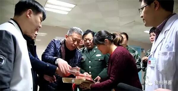 丰县正能量公益党支部发起救助在大火中烧伤的华山镇张集村20岁青年张恒,万利忠代表大家送去首笔10万治疗费。