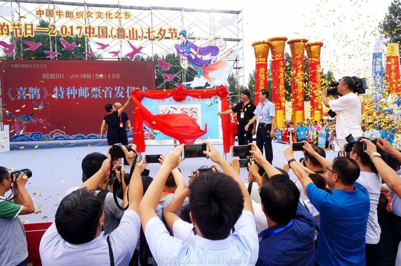 河南鲁山是牛郎故里,2009年2月被授于“牛郎织女文化之乡”。为此,中国邮政以赞美忠贞爱情为题材的邮票曾多次在鲁山举行首发式,如2009年七夕发行《民间传说——牛郎织女》特种邮票,2015年七夕发行《鸳鸯》特种邮票,2016年七夕发行《相思鸟》特种邮票。喜鹊作为牛郎织女传说中极具魅力的角色,今年七夕节,中国邮政把《喜鹊》邮票首发式选在鲁山举办,寓意美好而又深刻。