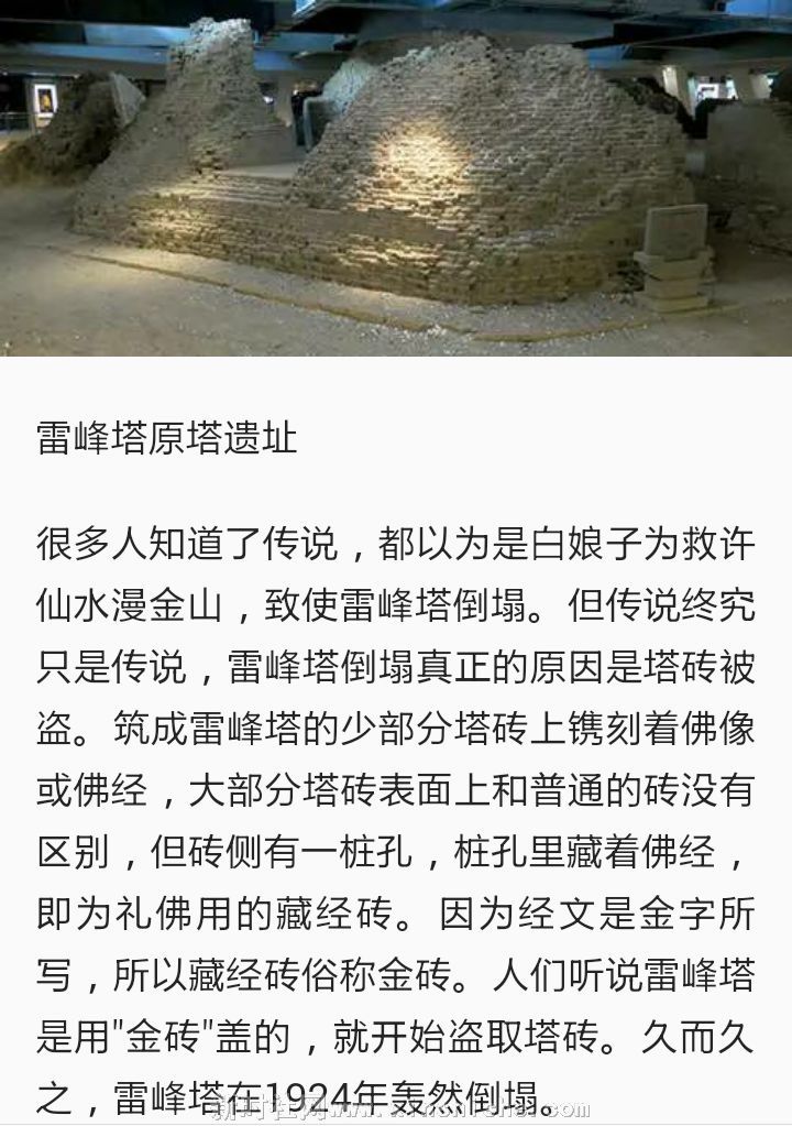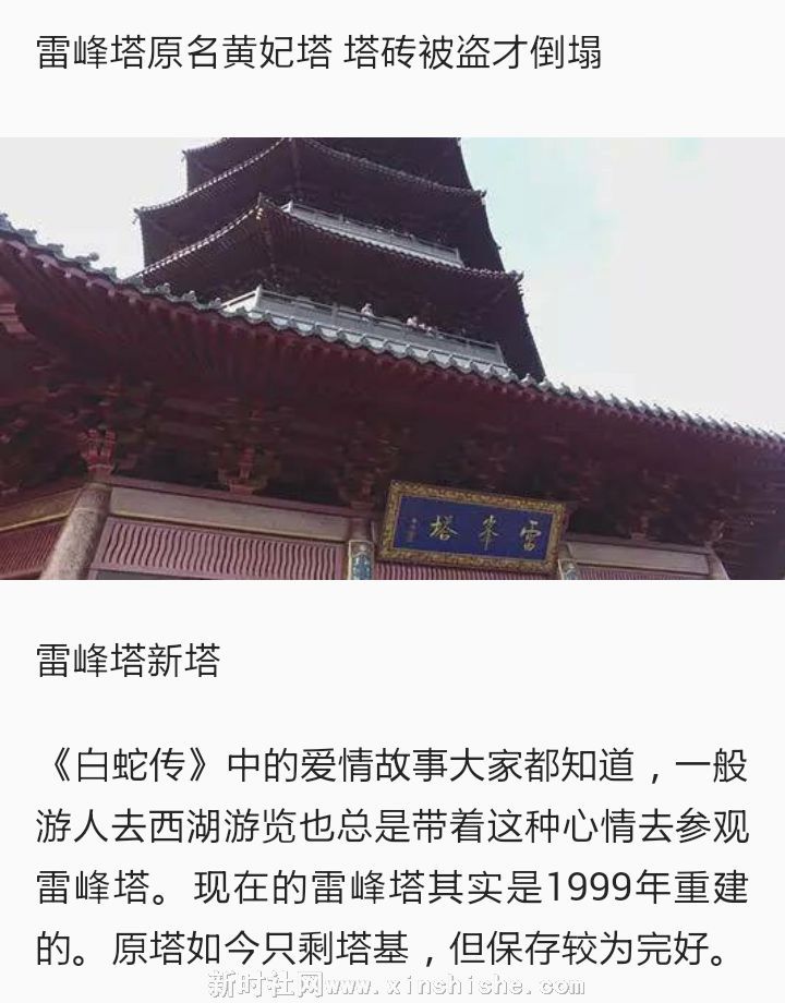 ♡雷峰塔原名黄妃塔 塔砖被盗才倒塌