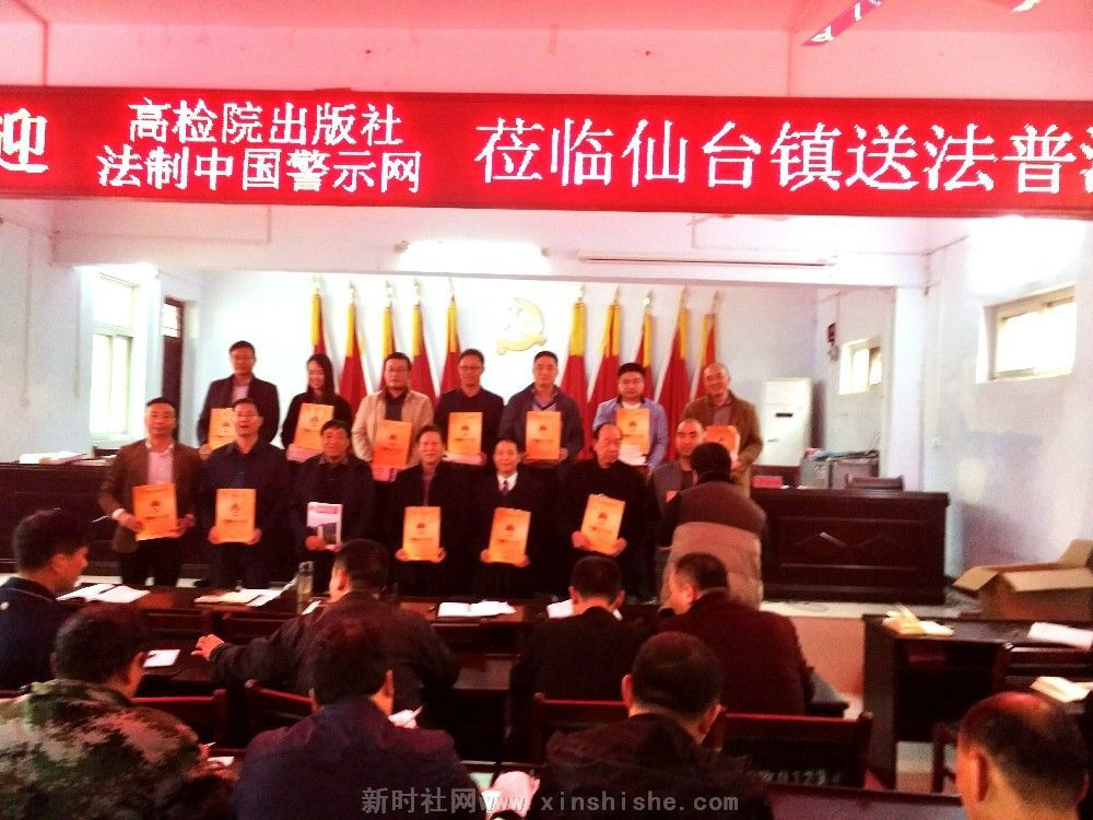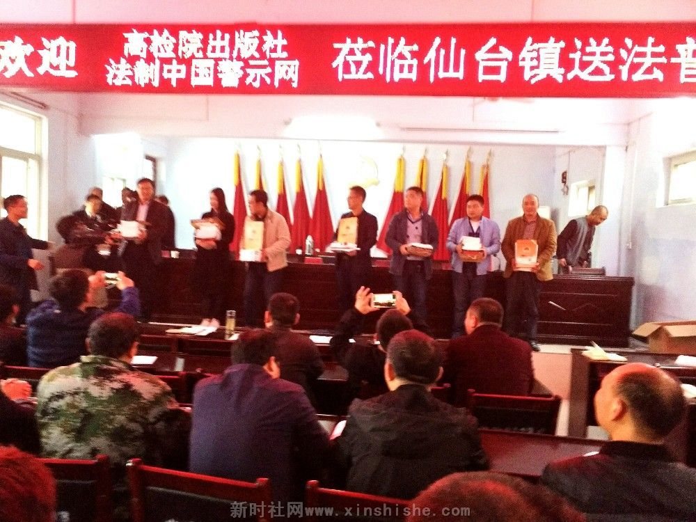特约记者陈运发据 法治中国警示网河南讯【文图/康进昌 陈磊磊】秋雨连绵难阻送法脚步,秋风飒飒更显关爱温情!为喜迎党的十九大的胜利召开,更好地普及法治教育,警示服务各级干部,提醒党员干部自觉学法、守法、用法,进一步弘扬法治廉政文化、传播法治文明,加快法治化建没步伐,2017年10月17日,最高人民检察院中国检察出版社《法治中国警示教育网》主仼王玉贵、副主仼康进昌、编辑陈运发及法治中国警示网平顶山工作站负责人李新超、王建民等同志一行数人携带国家新闻出版广电总局"十二五"规划重点音像项目《法治与责仼》警示教育光碟及预防职务犯罪学刊等法教书籍,冒雨来到叶县仙台镇党委、政府,开展“送法、普法”捐赠活动,受到镇党委书记虎永福、镇长刘科伟,原叶县文联主席庞江华、叶县统战部副部长苏功业等领导热烈欢迎和机关党员、干部、群众的好评。中共叶县县委宣传部新闻中心、叶县报社、平顶山电视台等媒体跟踪此次捐赠活动。 此次送法普法下乡镇,计捐送法治警示教育光盘200(集)套,<<预防职务犯罪学刋>>、法治文学书藉等100本,镇机关全体党员干部暨村干部代表受教人员达六十多人。