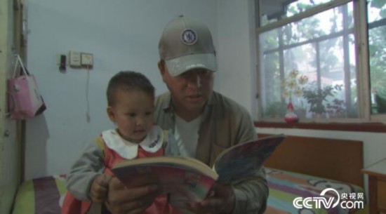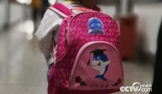 粉红色的小书包,是导演组的阿姨送给玲玲的礼物。她特别喜欢,一定要背着,大大的书包把她压得走路也有些踉跄,但依旧挺着小肚子,特别开心的背着书包在楼道里走了好几圈才肯罢休。再过几个月,玲玲就可以真的背起小书包,去上幼儿园了。