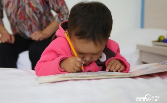 2017年10月17日,玲玲办理了入院手续。认识玲玲这么多天,从未看到她哭闹过。她活泼开朗,喜欢读书、画画,特别爱笑。福利院的妈妈们说,除了不小心碰到脑后的肿瘤,玲玲几乎不哭的。对于一个2岁的孩子,实属难得。 2岁的她很是机灵懂事,会在妈妈生气的时候哄妈妈。每次有好吃的,不管多么喜欢,都会分给妈妈们吃。