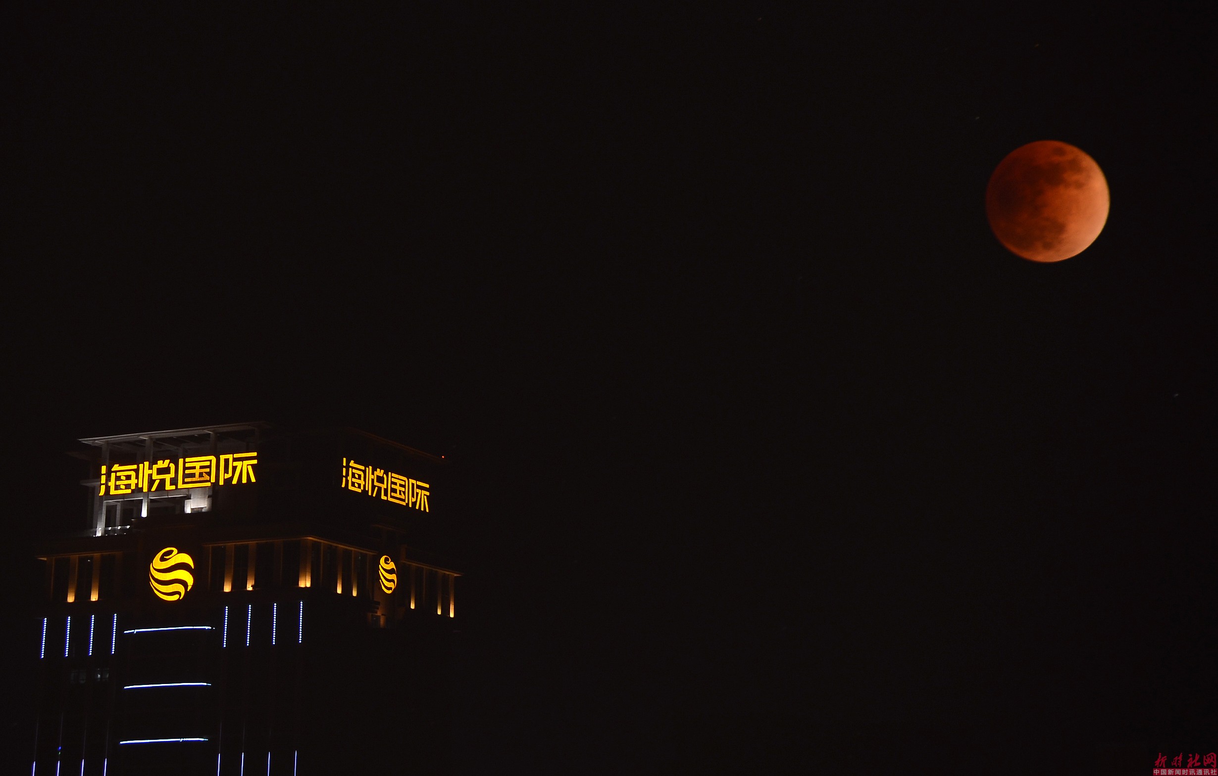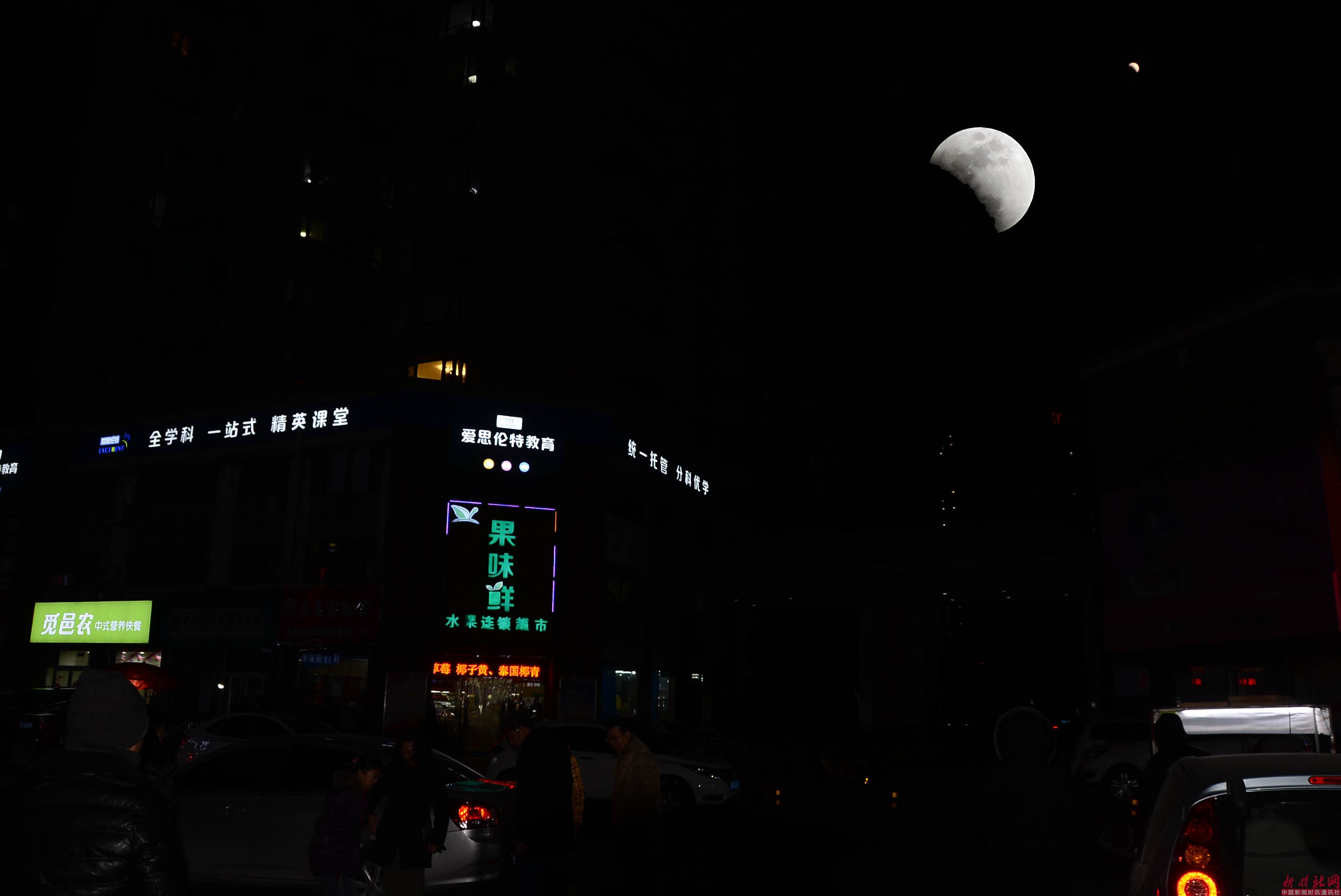 (新时社网杨等平摄影报道)月全食奇观于1月31日震撼登场。只要天气晴朗,我国绝大部分地区都能欣赏到一轮“红月亮”高挂夜空的美妙场景。如此带感、特别的视觉盛宴更是拍摄最佳机会。笔者有幸遇到这里一奇观,拍摄下与读者共赏!!