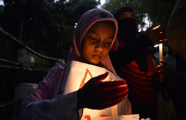 当地4月17日,印度加尔各答,民众点亮烛光抗议强奸犯罪。印度近期接连发生针对少女的强奸和谋杀案,引发民众大规模抗议。图为点亮烛光寻求保护的小女孩。视觉中国图