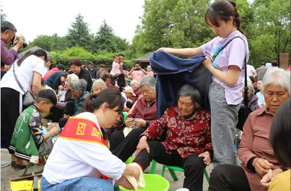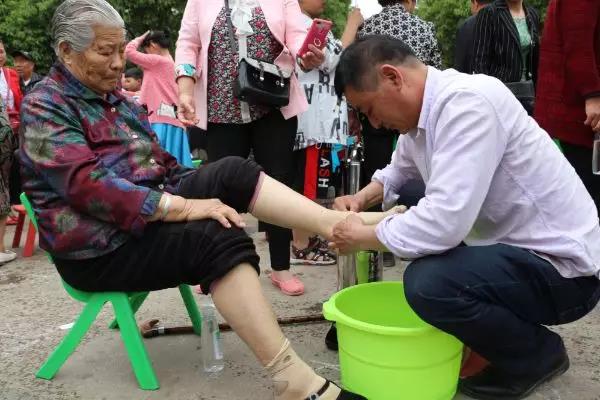 现场露峰街道办事处的百余位儿女们为母亲洗脚尽孝。请父母洗一次脚,看看他们布满老茧的脚掌,帮父母捶一次背,看看他们渐渐弯曲的背脊,为父母按摩一次,感受他们逐渐变老的身躯,对他们说上一句“你辛苦了,我爱你们!”,感恩你们,给了我们生命,教会我们生活,是你们为我们撑起了一片天空,感恩有你,一路相伴!